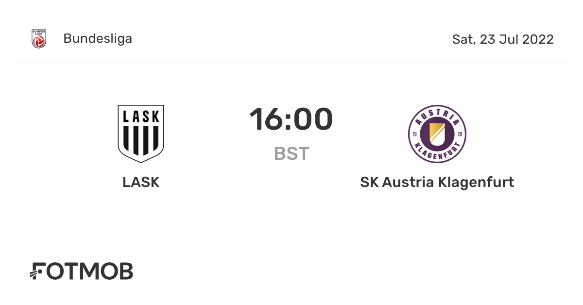 The match starts at 400 PM on February 13th 2022. Spieltag der Saison 202223 kommt es in der österreichischen Bundesliga zum Duell zwischen dem LASK und Austria Klagenfurt. Bis zum Ausschluss von Michorl war der LASK klar überlegen dann ging das Spiel hin und her und Klagenfurt.